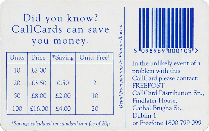 In 1996, 50,000 additional Callcards were produced using the O.D.S. chip. This was the first production for Telecom Eireann by card manufacturer O.D.S.