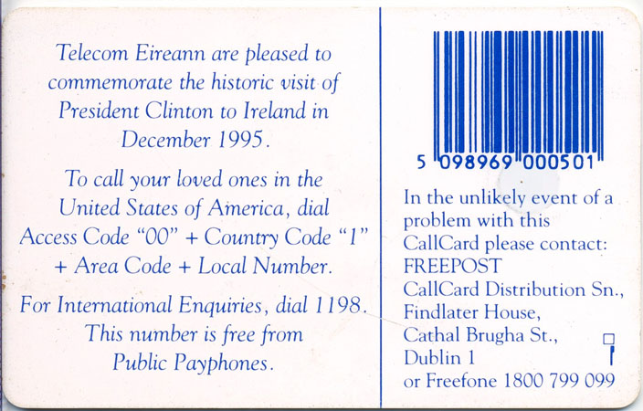 Callcard issued to commemorate the historic visit of President Clinton to Ireland in November 1995
