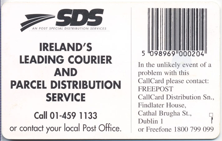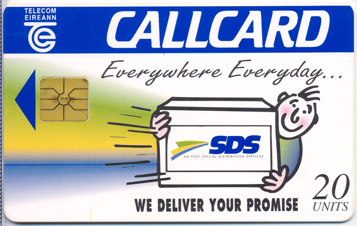 Advertising Callcard for S.D.S (Now merged with An Post, see here for more info on its closure)