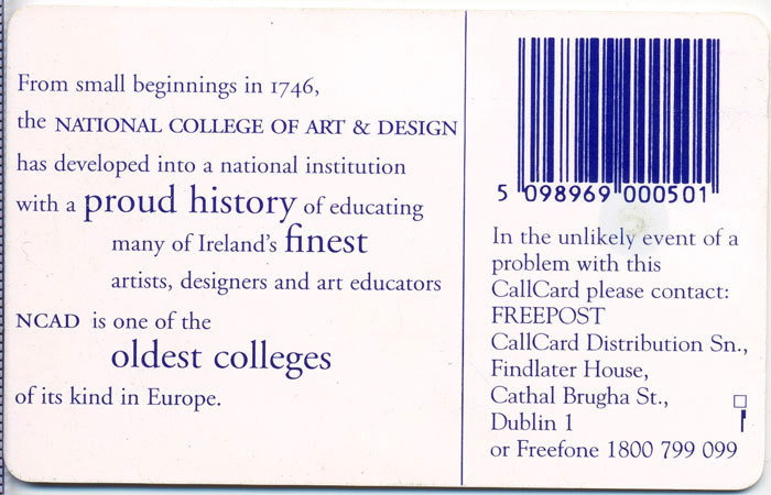 Callcard issued to commemorate the 250th anniversary of the National College of Art and Design