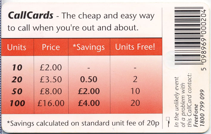 A limited edition cardboard sleeve was also available, which contained all 5 of the definitive range Callcard designs.