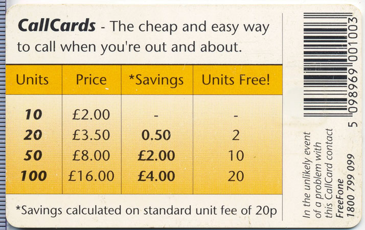 A limited edition cardboard sleeve was also available, which contained all 5 of the definitive range Callcard designs.