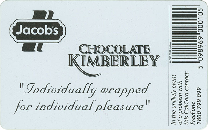 Callcard advertising Jacobs Chocolate Kimberley biscuits.