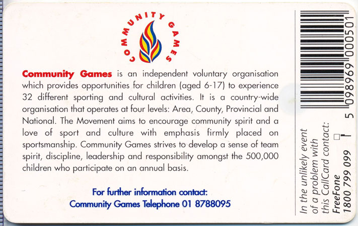 Callcard isssued to promote the Community Games in Ireland