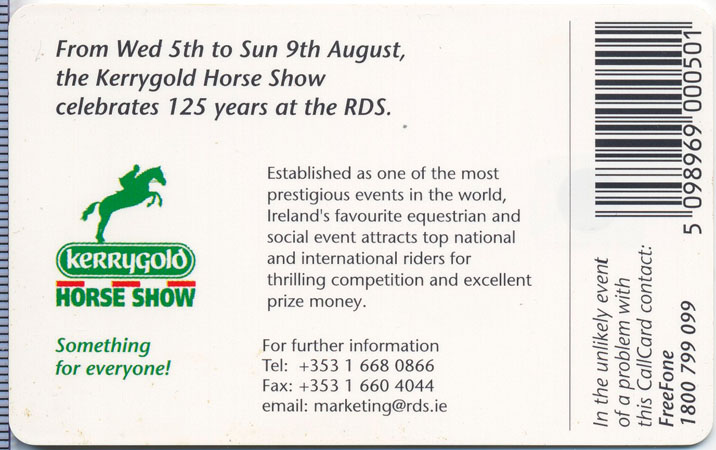 Advertising Callcard celebrating 125 years of the Dublin Horse Show which is held at the RDS Dublin every year.
