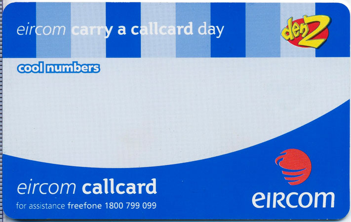 "Carry a Callcard Day" was Launched in conjunction with RTE's Den2 (Den 2) as a safety initiative held on April 17th 2000. Designed for children aged 4-12, the "Eircom Carry a Callcard Day" promoted an increased awareness of Eircom Callcards and their safety benefits amongst children, teachers and parents.