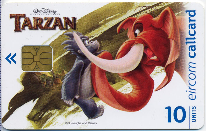 This is the final of five different types of Tarzan Callcards produced by eircom to celebrate the launch of the Disney blockbuster, which was released in cinemas from October 22nd 1999. These cards were on sale from October 21st 1999 in through eircom's 6,000 agents in Ireland.